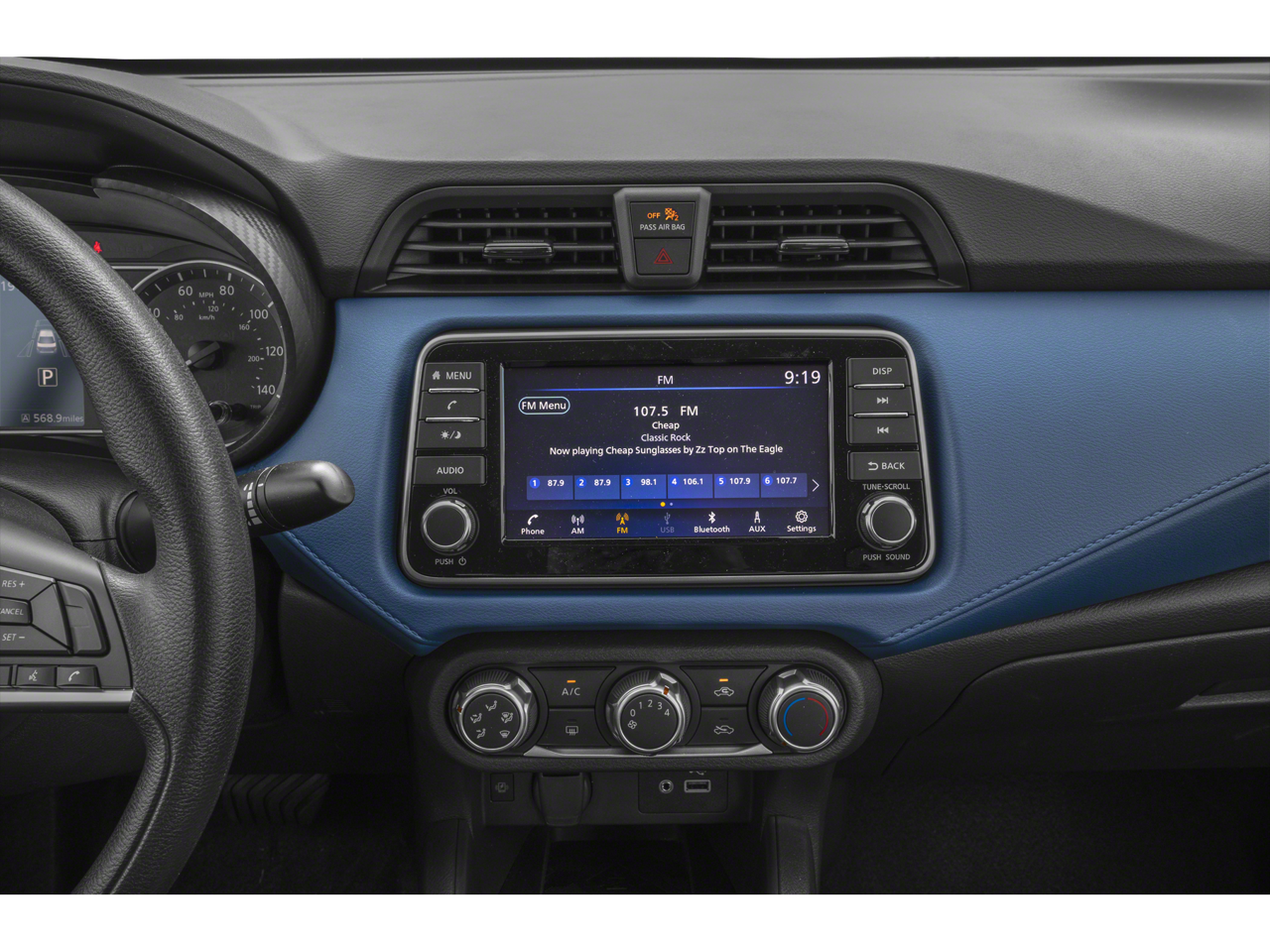 - Radio: AM/FM Audio System -inc: RDS, MP3, aux-in, 7" Advanced Drive-Assist Display, NissanConnect featuring Apple CarPlay and Android Auto, Bluetooth® hands-free phone system, streaming audio via Bluetooth®, interface for iPod and other compatible devices, hands-free text messaging assistant, Siri Eyes Free/Google Assistant voice recognition, 4 speakers and 3 USB ports (2-charge only)